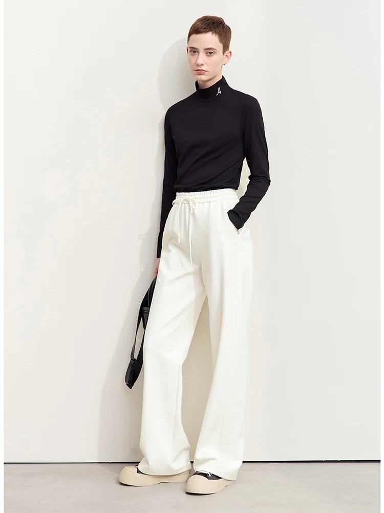 AMII Minimalism Casual Pants for Women 2025 Autumn Wide Leg New Loose Vertical Elastic Waist Drawstring Sporty Trousers 12343338