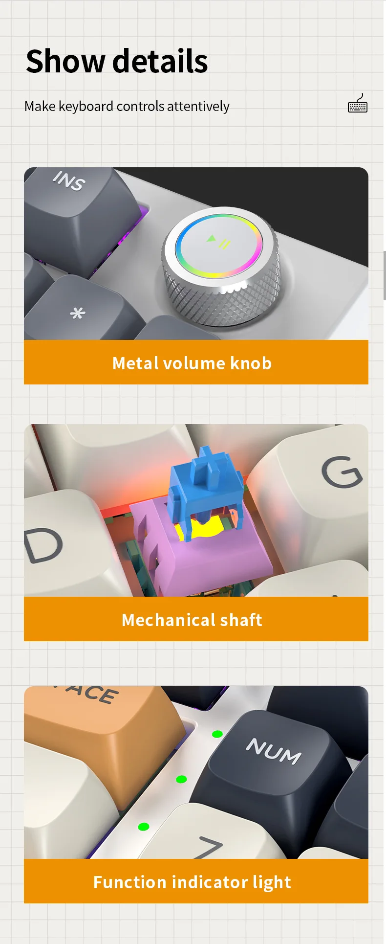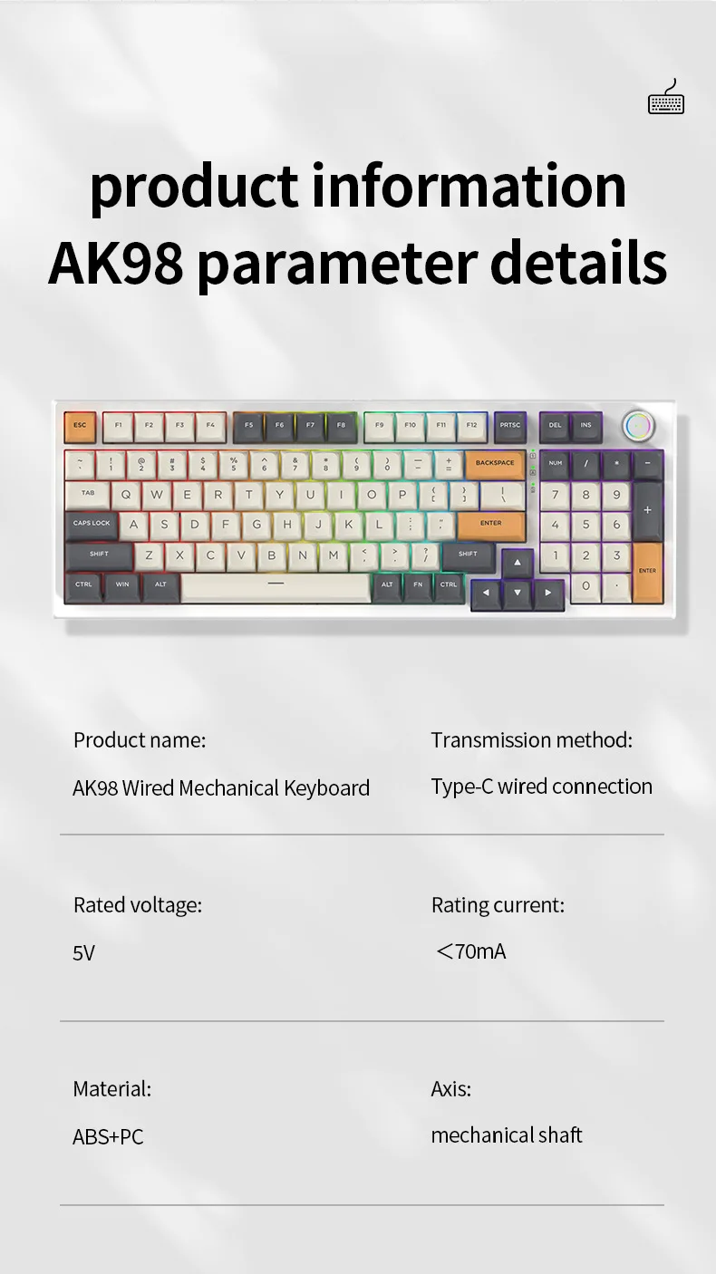 Mechanical Keyboard Blue Axis Red Axis RGB E-sports Game Knob Computer Peripheral Game Office Wired Mechanical Keyboard