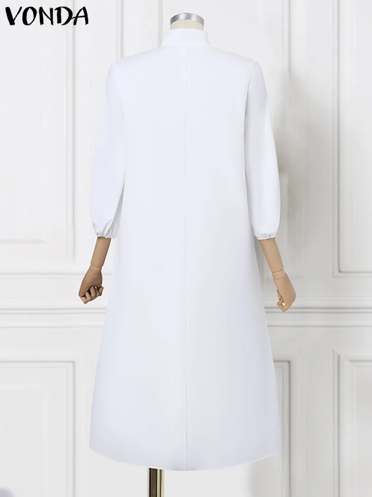 Plus Size 5XL VONDA Women Office Dress 2025 Long Maxi Sundress Casual Solid Color Elegant Elastic Loose A-line Dress Vestidos