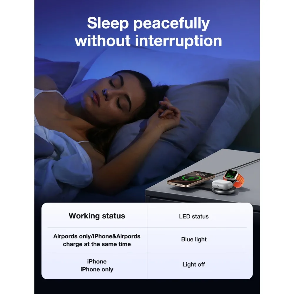 3 in 1 Wireless Charger: The 3 in 1 Wireless Charging Station for Apple Devices is a great option to organize your home, office, or meeting room; It lets you say goodbye to tangled cords and messy cables, keeping your space neat and organized, making it a convenient charging solution for your busy lifestyle.