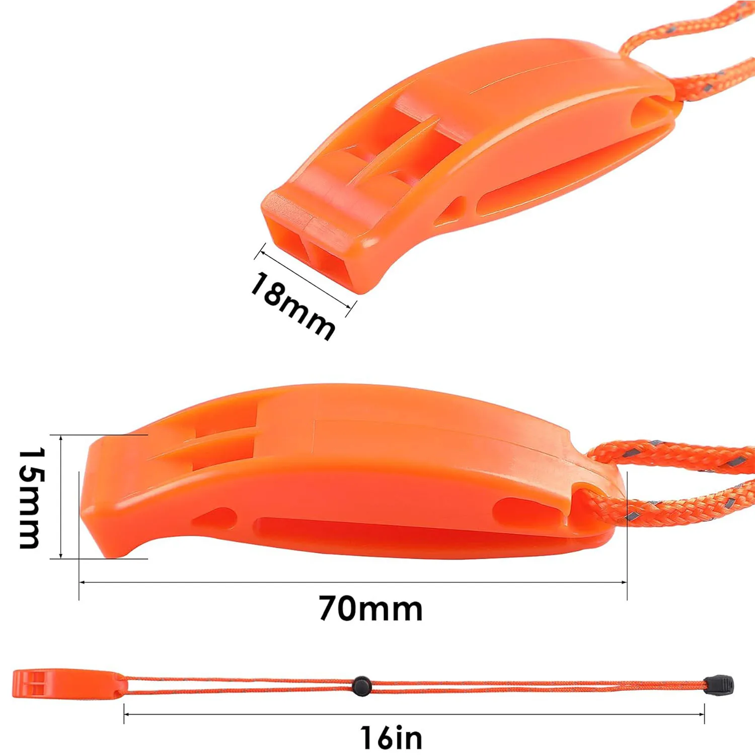 ADJUSTABLE REFLECTIVE LANYARD and CLIP, high visibility even in the dark with slider button to adjust length around neck, long lanyards can easily loop through backpack, sailboats, camp hike gear, life jacket, kayak PFD, paddling paddle board, bike. You can also clip the whistle to your belt or shoulder straps for quick and easy use in case of emergency.