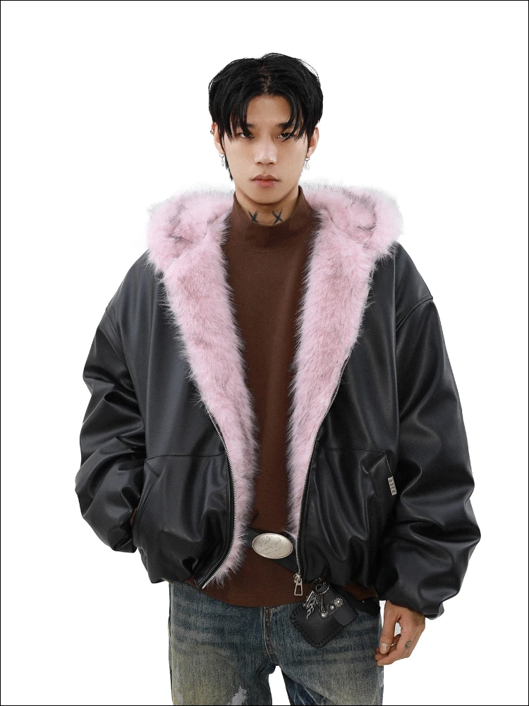 2024 Men's Winter New Parkas Plush Leather Jackets Chic Padded Coats Men's Women's Warm Trendy Long Sleeve Pocket Padded Jackets