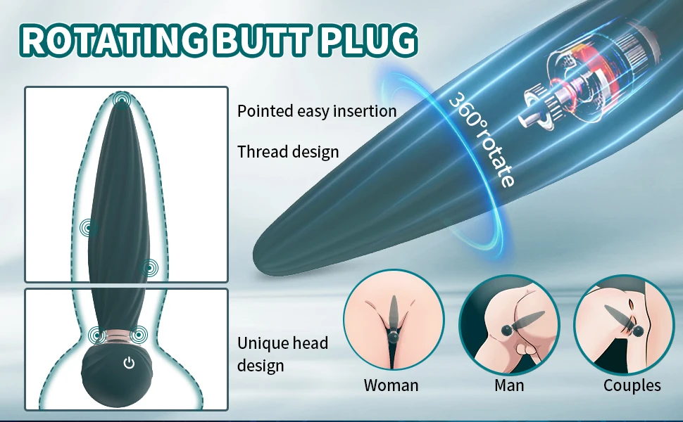 360 Rotation Vibrating Anal Plug 10 Speeds Remote Control Butt Plug Vibrator Prostate Massage Anus Sex Toys For Men Women Adult