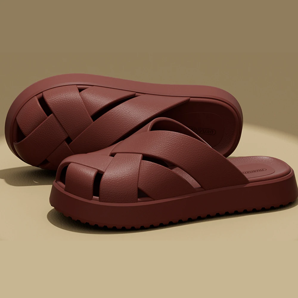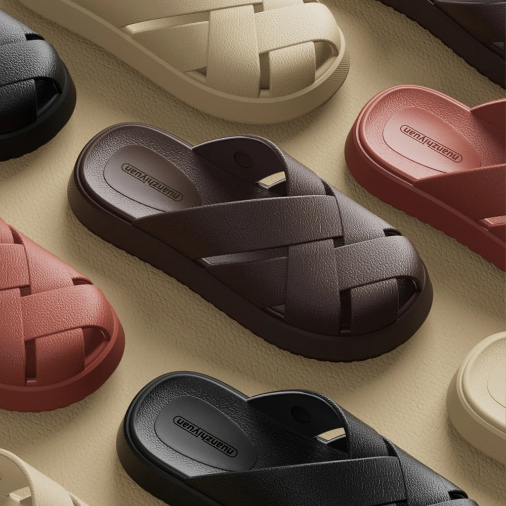 BASATU Men Summer Anti-slip EVA Closed-Toes Slippers Soft Outdoor Baotou Sandals Couple Unisex Home Indoor House Shoes Footwear