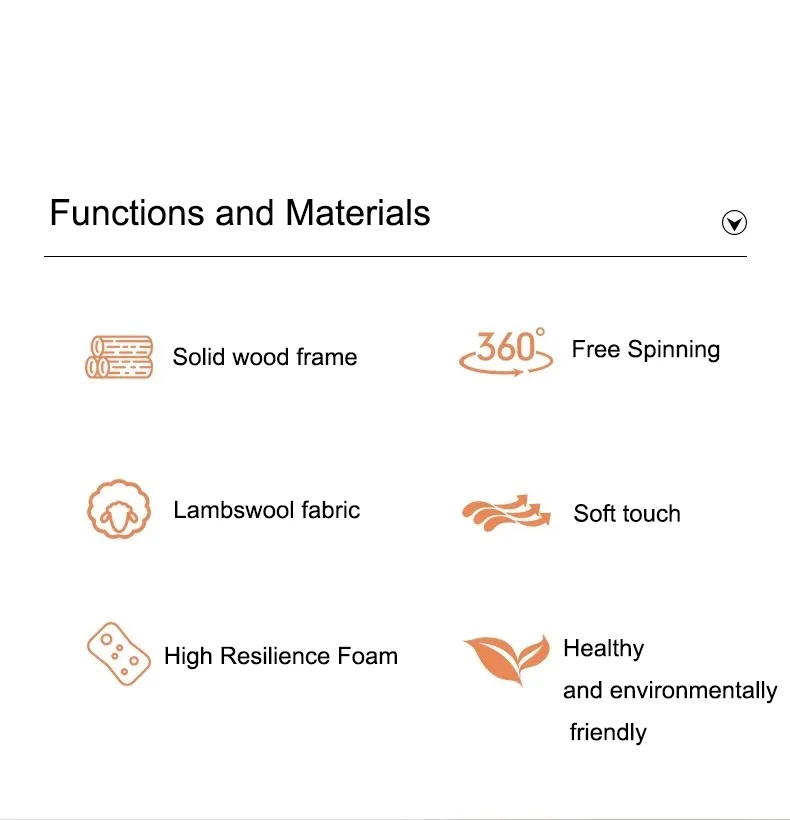 Solid wood frame for extra durability Lamb's wool fabric, more skin-friendly High Resilience Foam Free Spinning Soft touch Healthy and environmentally friendly