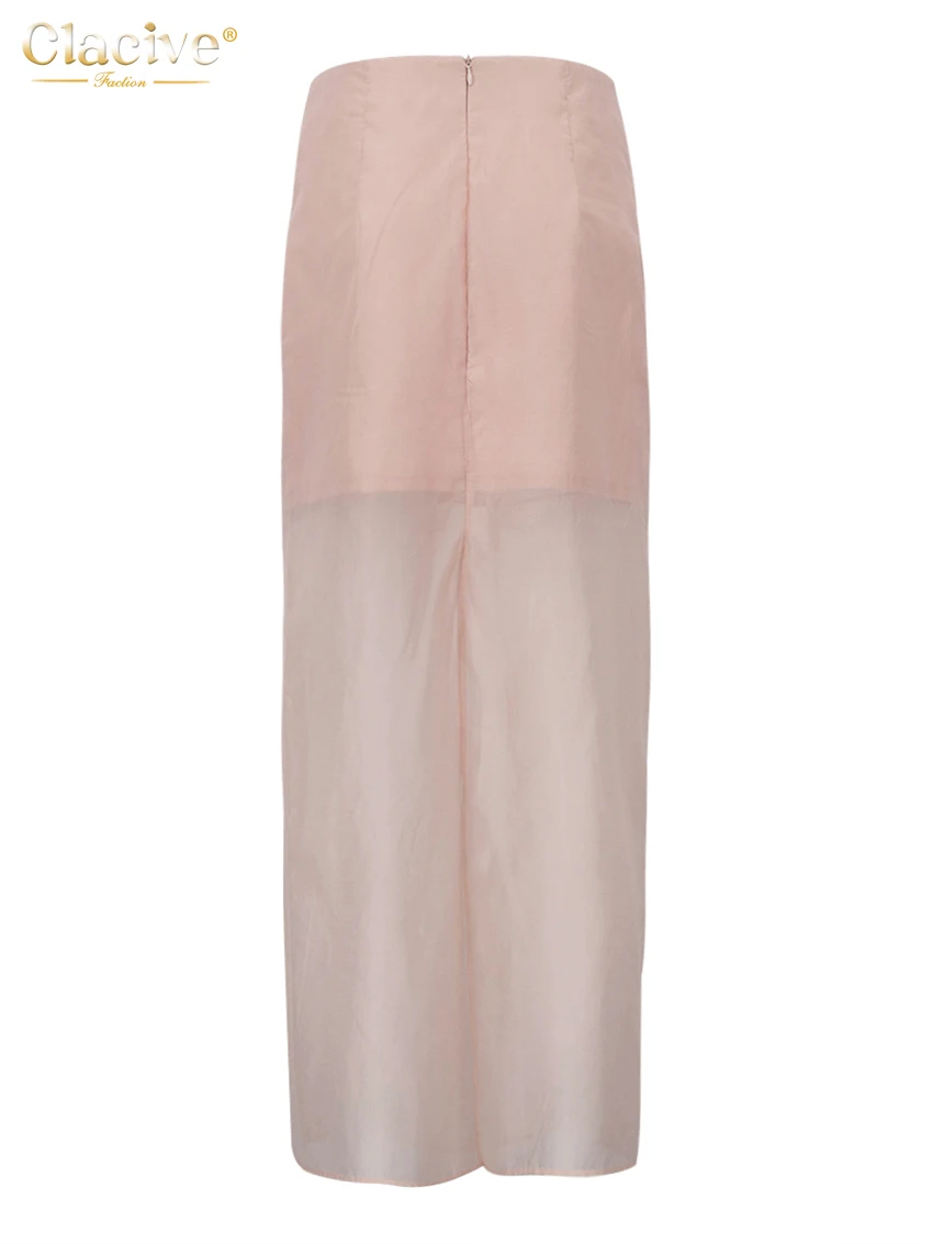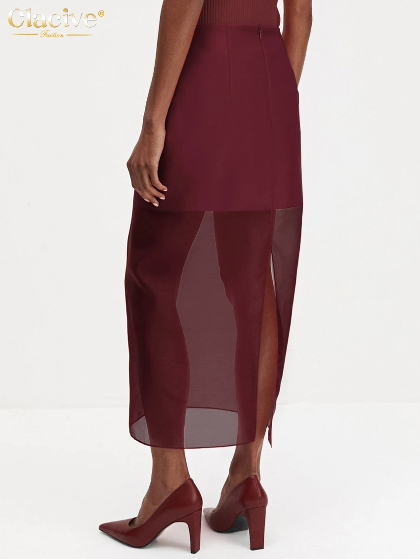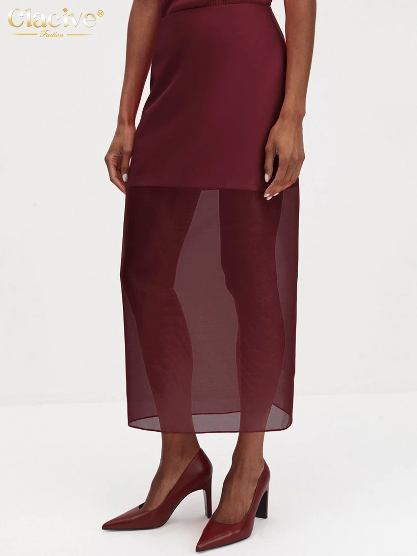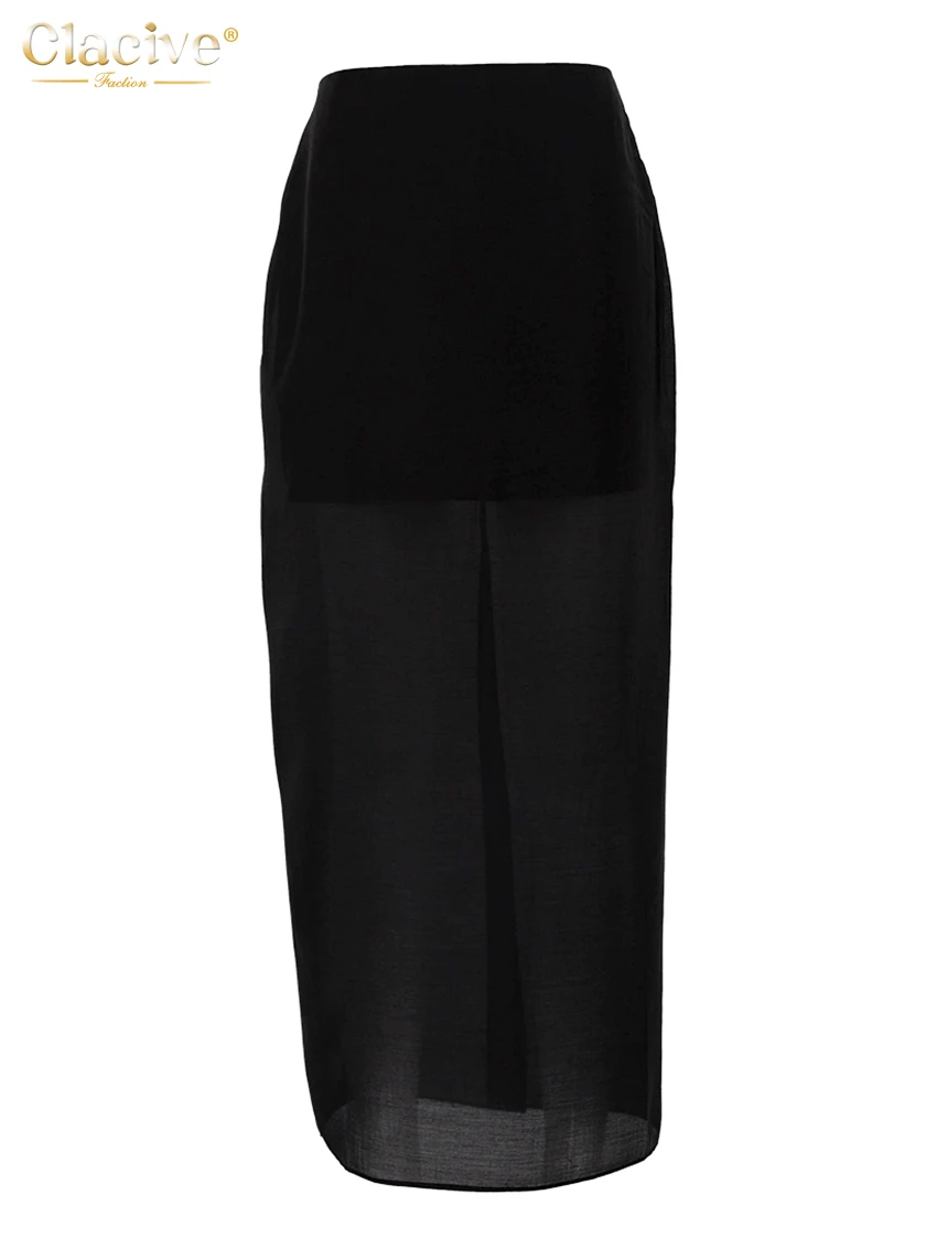 Clacive Fashion Loose Balck Women Skirt Casual High Waist Ankle Length Skirts Elegant Classic Mesh Spliced Skirt Female Clothing