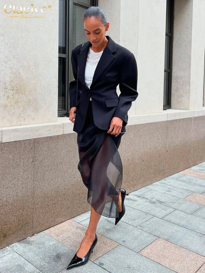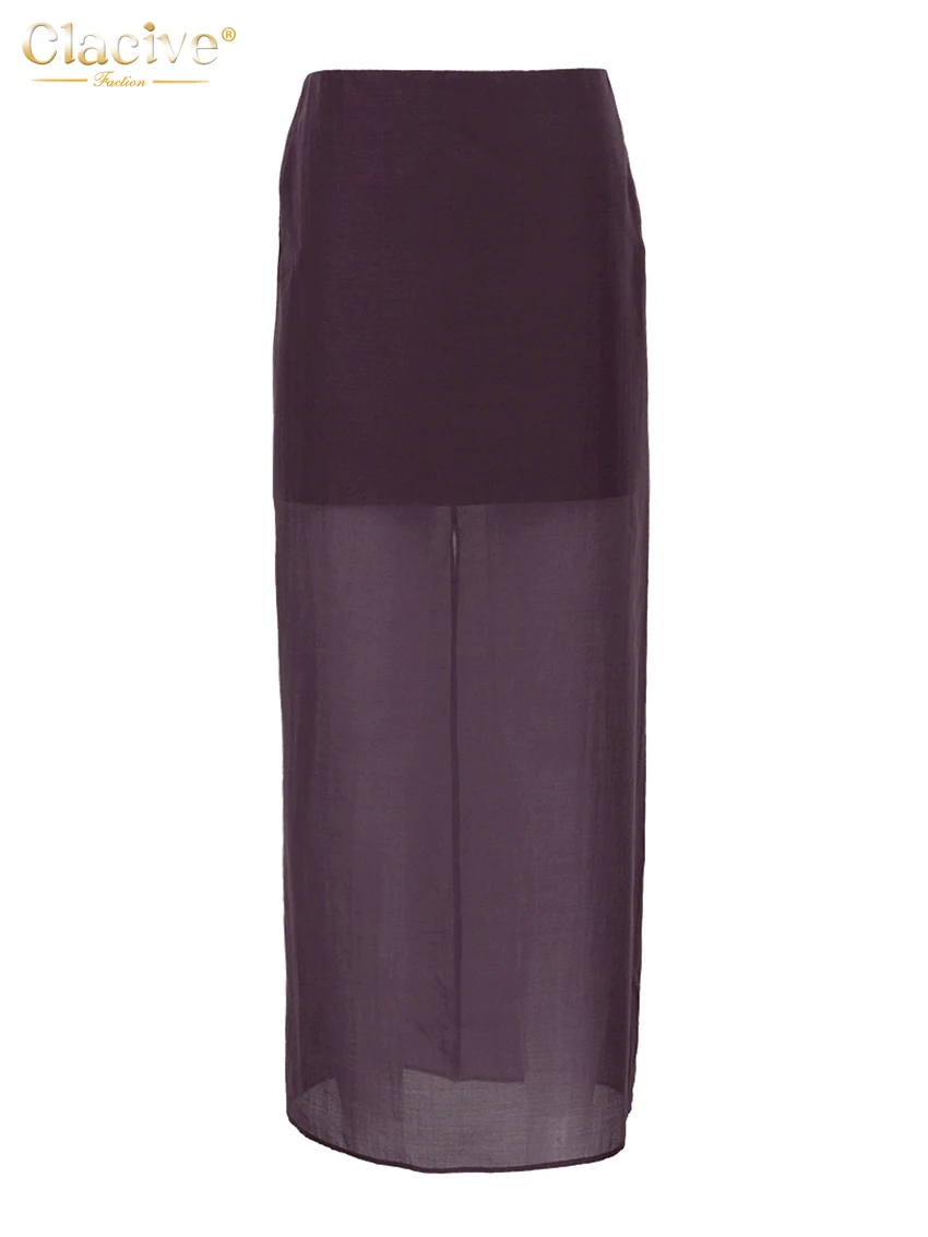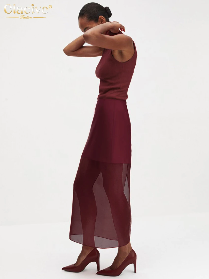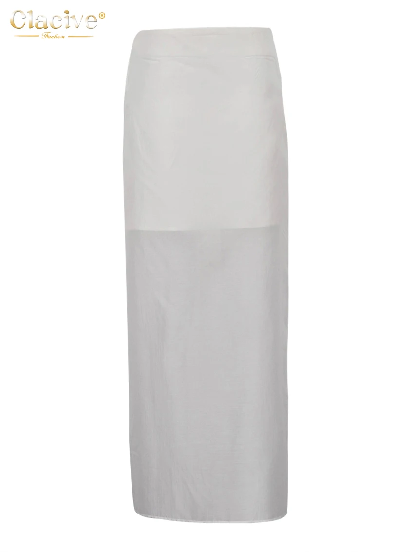 Clacive Fashion Loose Balck Women Skirt Casual High Waist Ankle Length Skirts Elegant Classic Mesh Spliced Skirt Female Clothing
