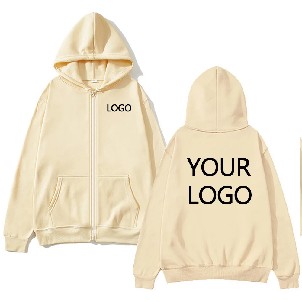DIY Personalised customised logo, men's street hoodie, zip front sports sweatshirt, women's casual knitted hoodie, couple's gift