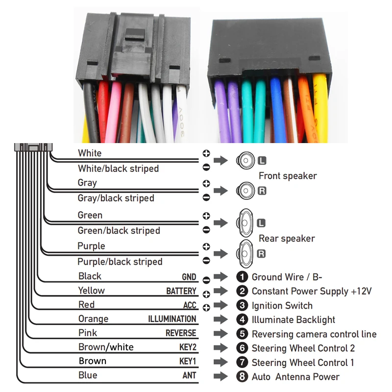 ISO Wiring Harness Adapter, for 2 Din Car Android Radio Head Unit with 16 Pin, Automotive Electrical Cable, Plug and Play