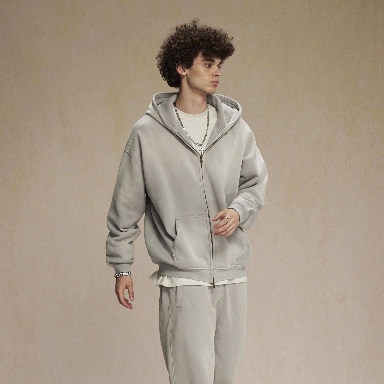 Men's Zip Up Hoodies Tie Dye Washed Double Oversize Cardigan Sweatshirt Loose Plus Plush Gradient Man Hooded Pullovers Winter