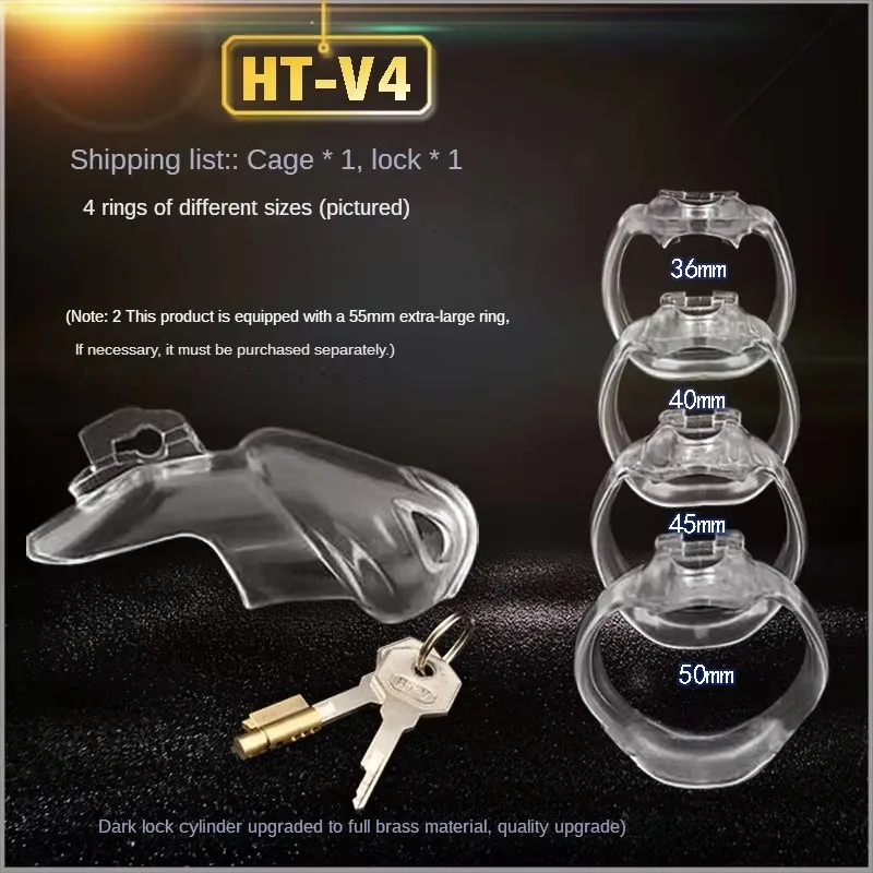 HT-V5, one size snap ring + two keys for one cageTo achieve the separation of the lock, firmly control the key authorityOur V5 model, made in bio-resin, offers you a new design to live in chastity every day with ever more pleasure and security.A more ergonomic & always more discreet design which offers an easy installation for a long term comfort.Click & LockNew closure system integrated in the ringWe offers a Click & Lock padlock system included in the ring which replaces the traditional padlockOur technological innovations have allowed us to increase the comfort and reliability of our chastity cages in order to offer you the best possible experience throughout the day !Material:100% Biosurced Resin.[Material] resin + metal[Color] Clear(Pink/BlackPre-sale, temporarily out of stock)[Cage Size] as show[Ring Size] 36mm/40mm/45mm/50mm[Weight] Net weight is about 150 grams[List] A cage + 1 ring + 1 set of keysNote: If you only buy rings, please contact customer service, please note the size of the snap ring when placing an order.(Note: There will be a little error in the size of the product due to the difference in measurement methods, measuring instruments, factory production batches, etc. Generally, the error of ± 2 mm is normal, and it is not a quality problem or the size description does not match, thank you)If you have any questions about size, please contact our store customer service staff.Tips:V5 rings are not compatible with V4,V3,V2 cages. ---If the received item presents the following situations,such as deformation,unfitness of ring and cage,just soak this item in the hot water for about two minutes and then it will be normal,which is the feature of the resin, not the quality issue of this item.