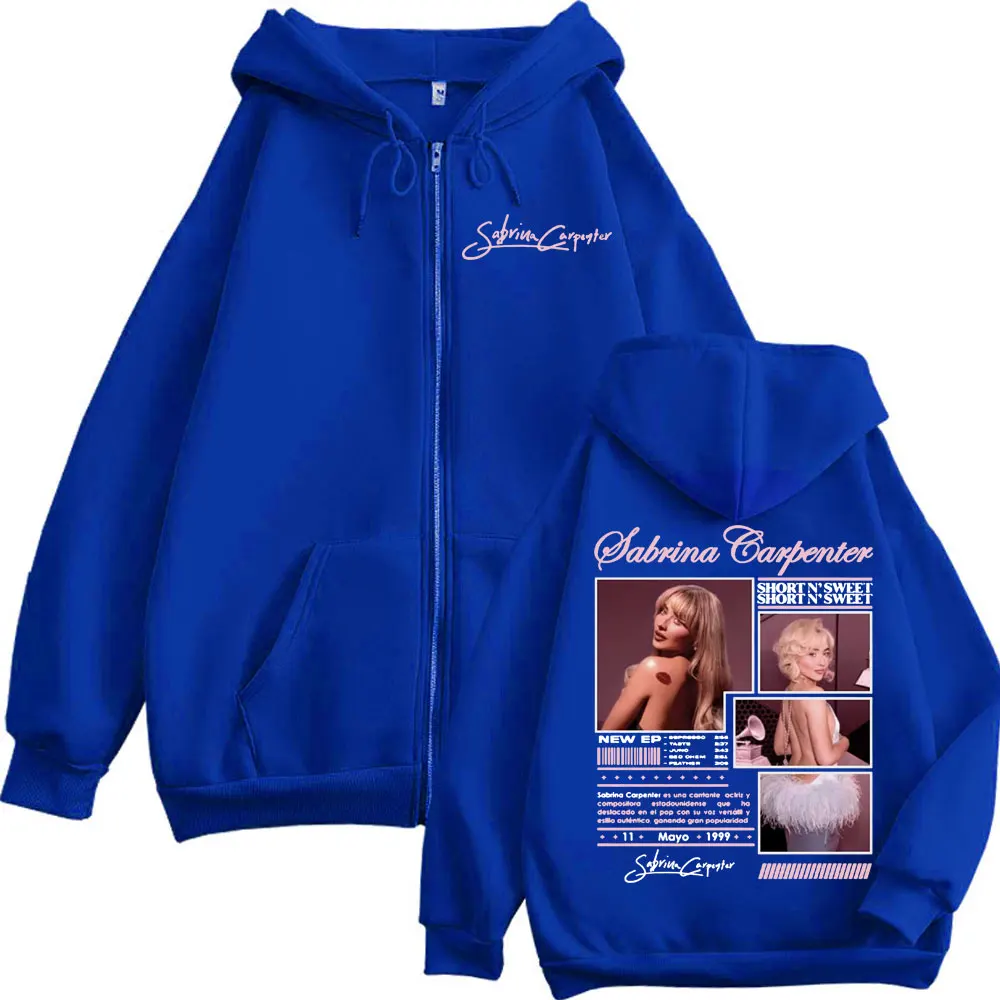 Sabrina Carpenter Short N' Sweet Merch Zipper Hoodie Fashion Aesthetic Zip Up Sweatshirt Men Women Oversized Casual Pullovers