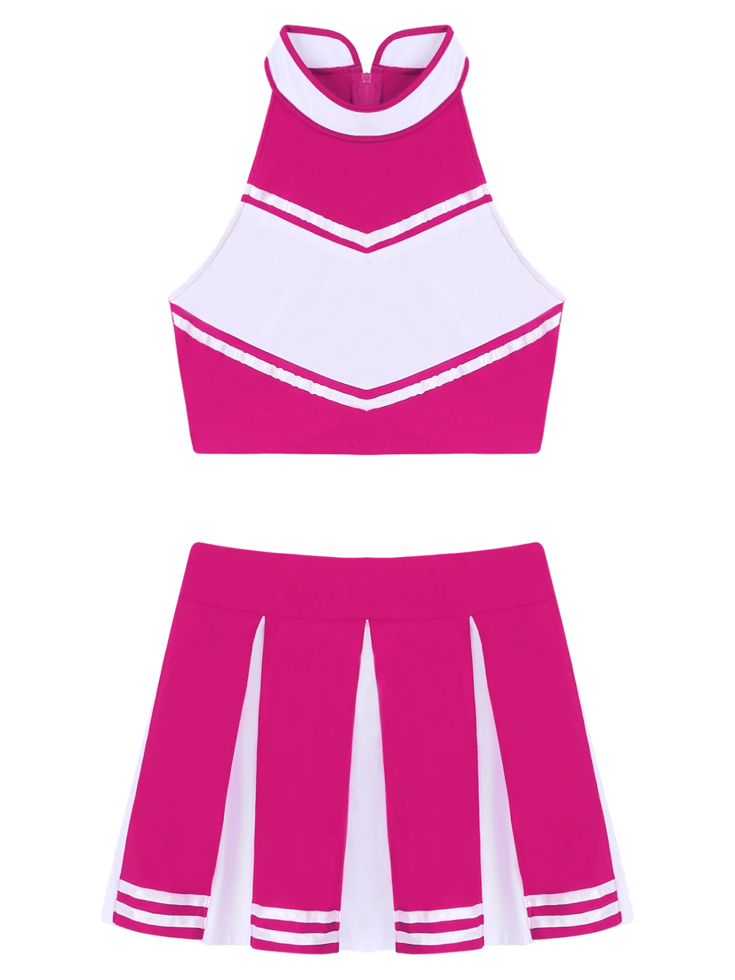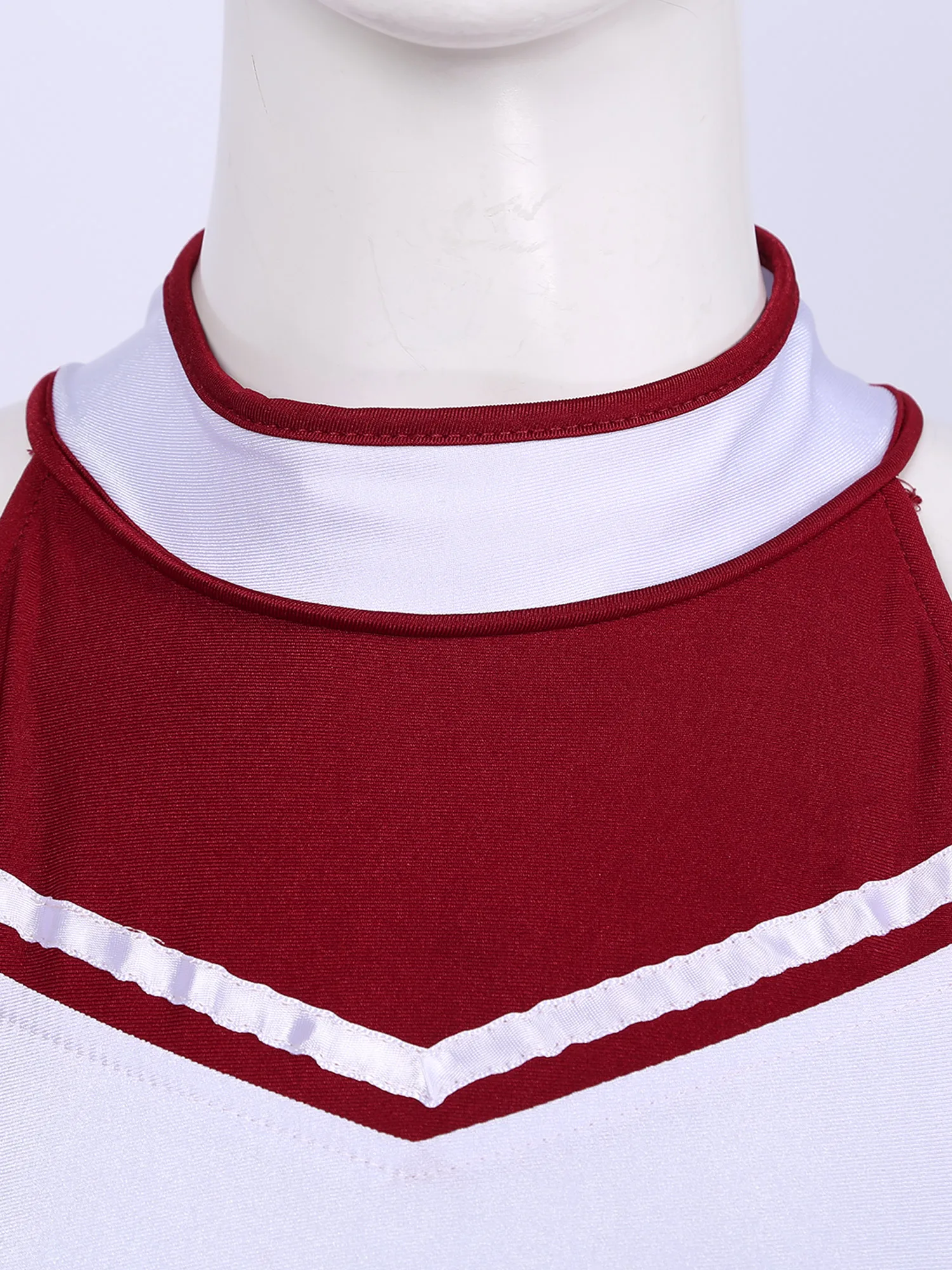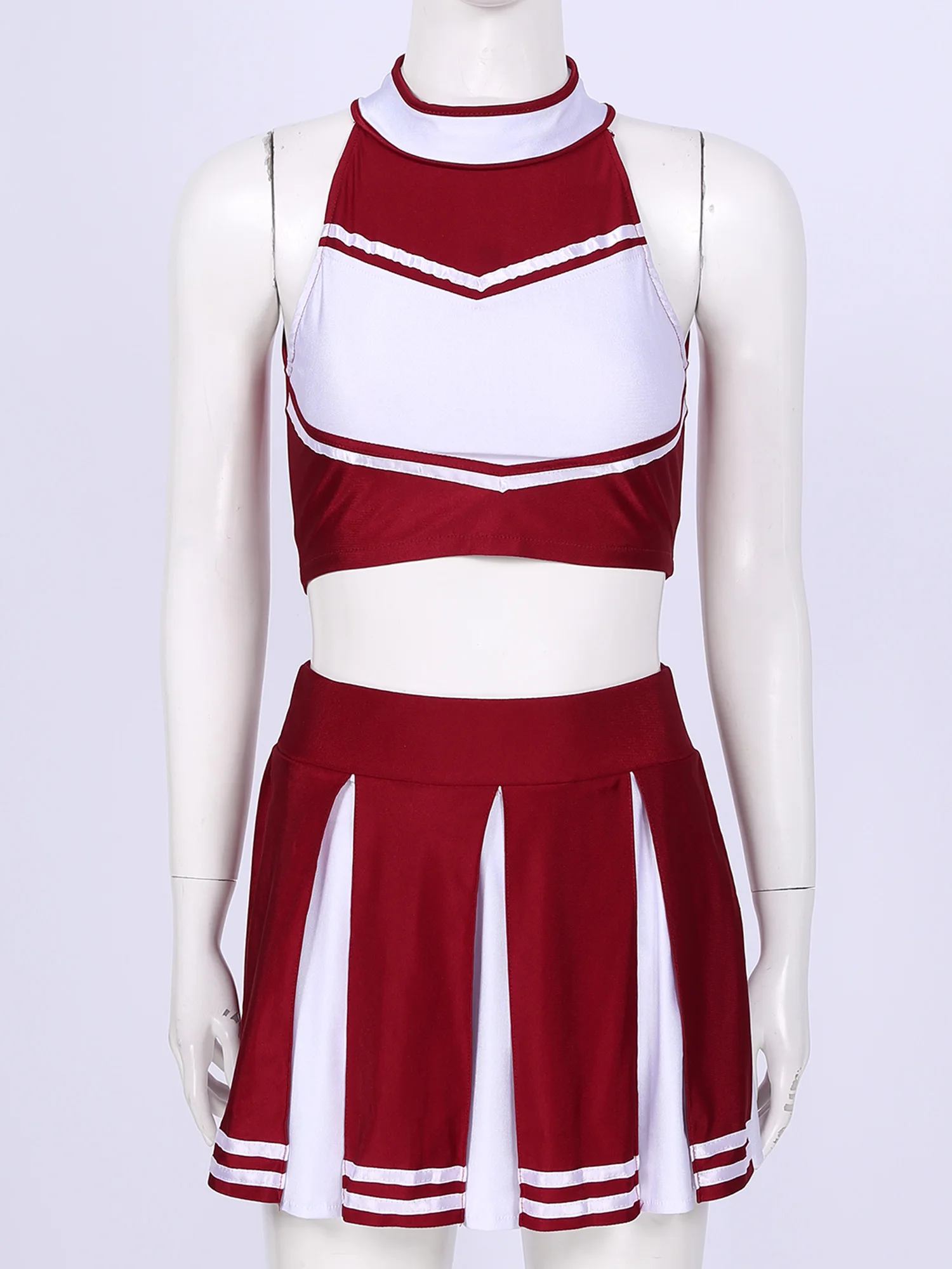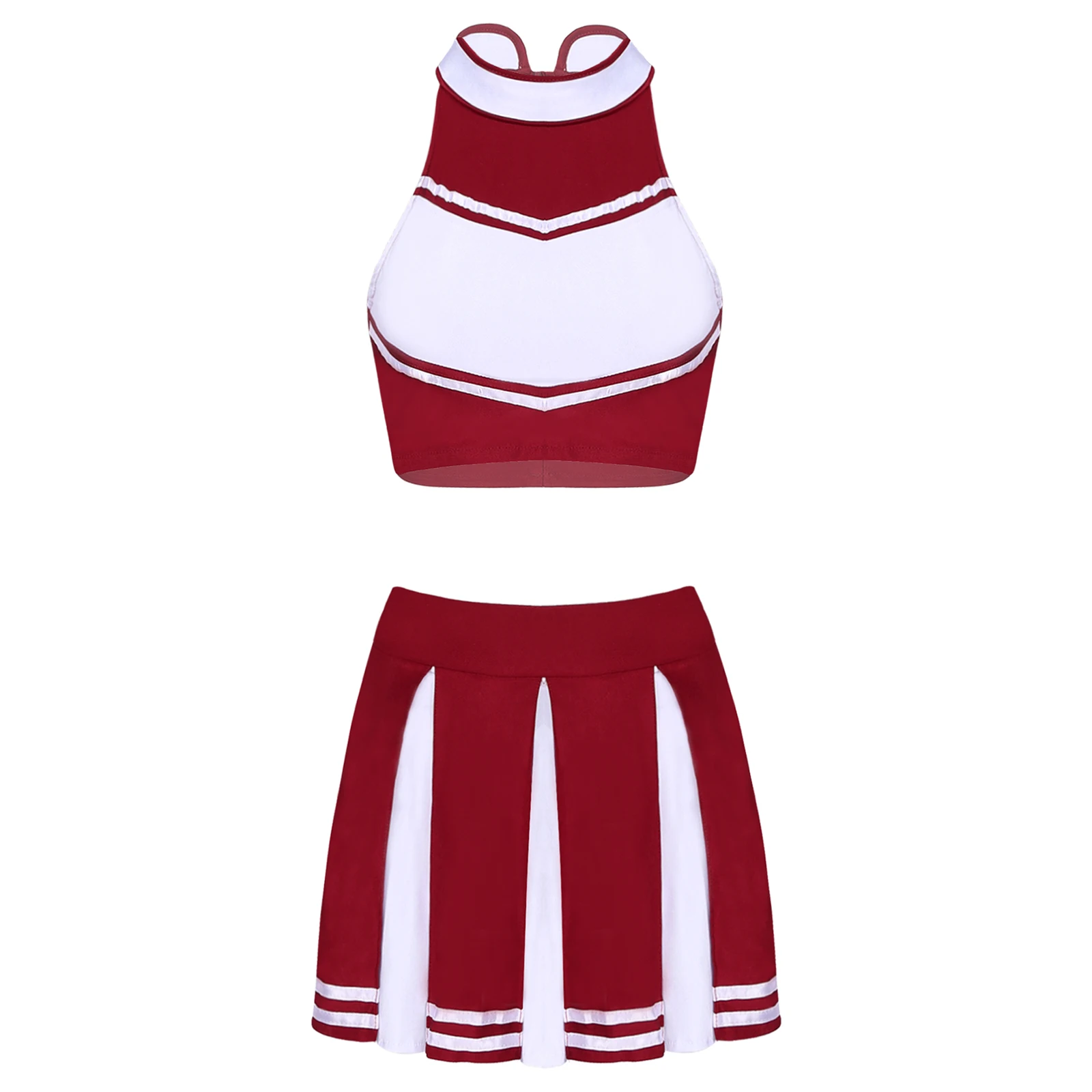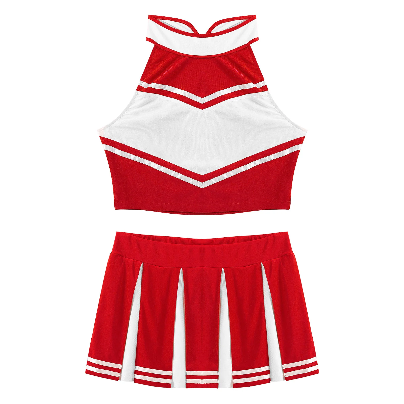 Sexy School Girl Cheerleader Costume Women Adult Cheerleading Uniform Dancing Outfit Sleeveless Crop Top with Mini Pleated Skirt