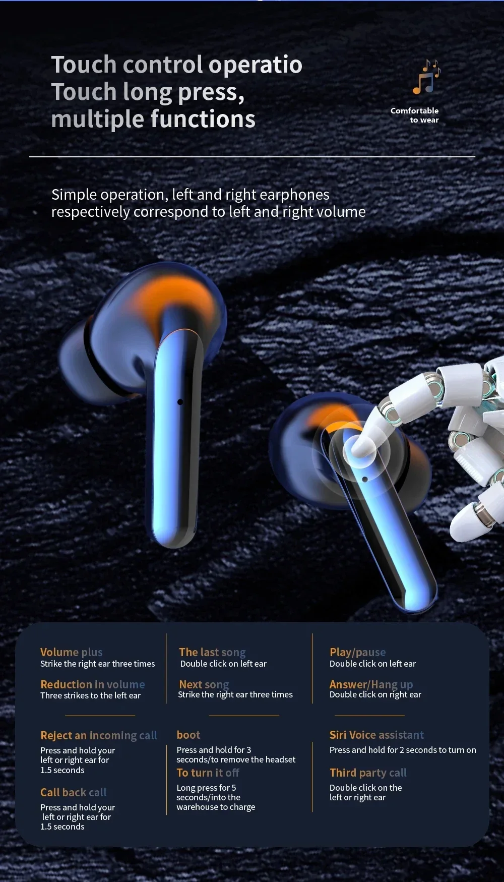• Touch Control Mic :Easily control your music and take calls with the touch control mic, making it convenient to use on-the-go.